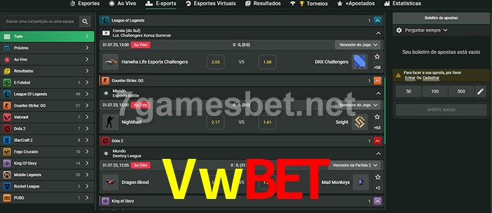 O Vwbet oferece uma grande seleção de opções de apostas em e-sports com probabilidades competitivas